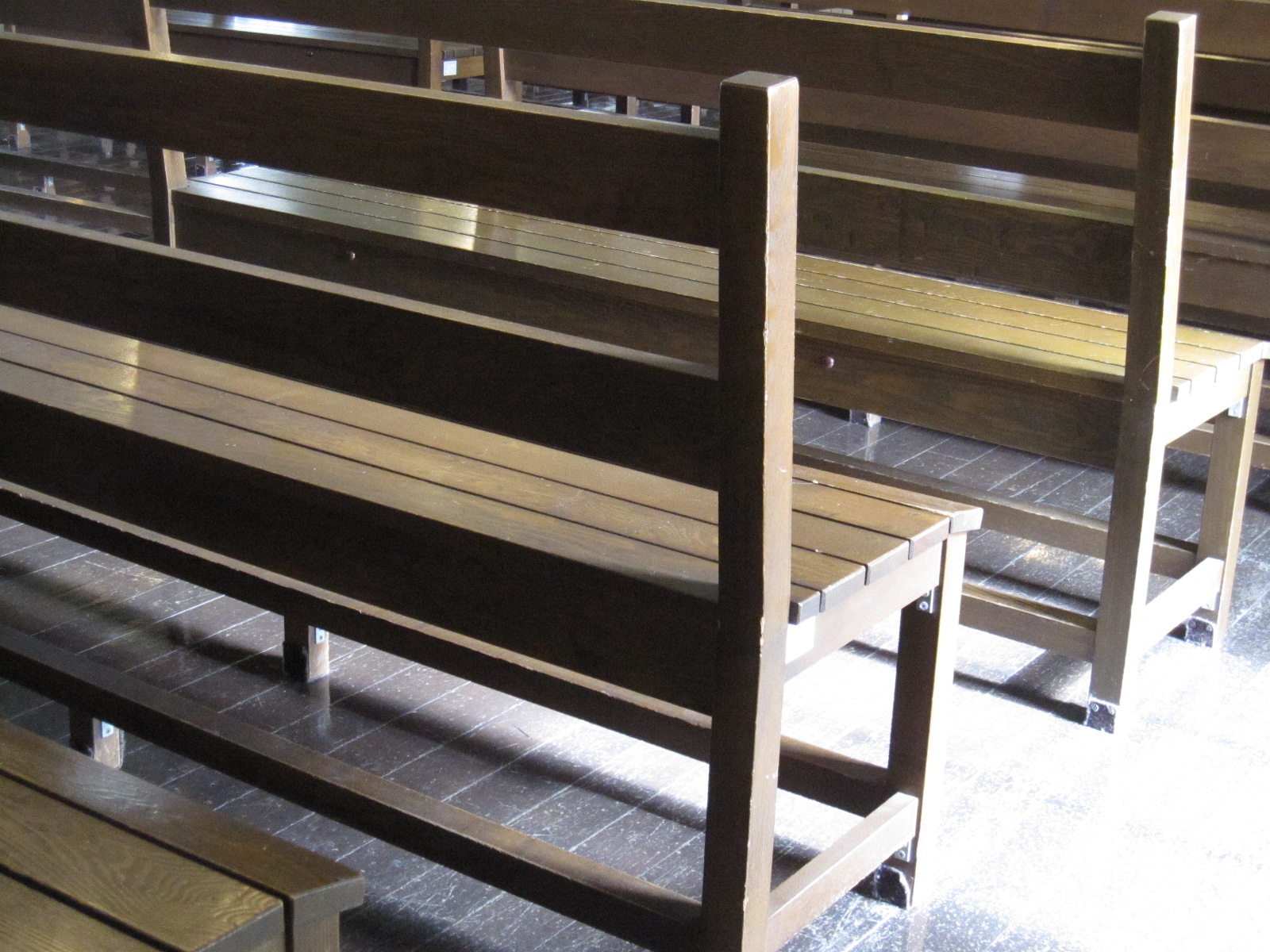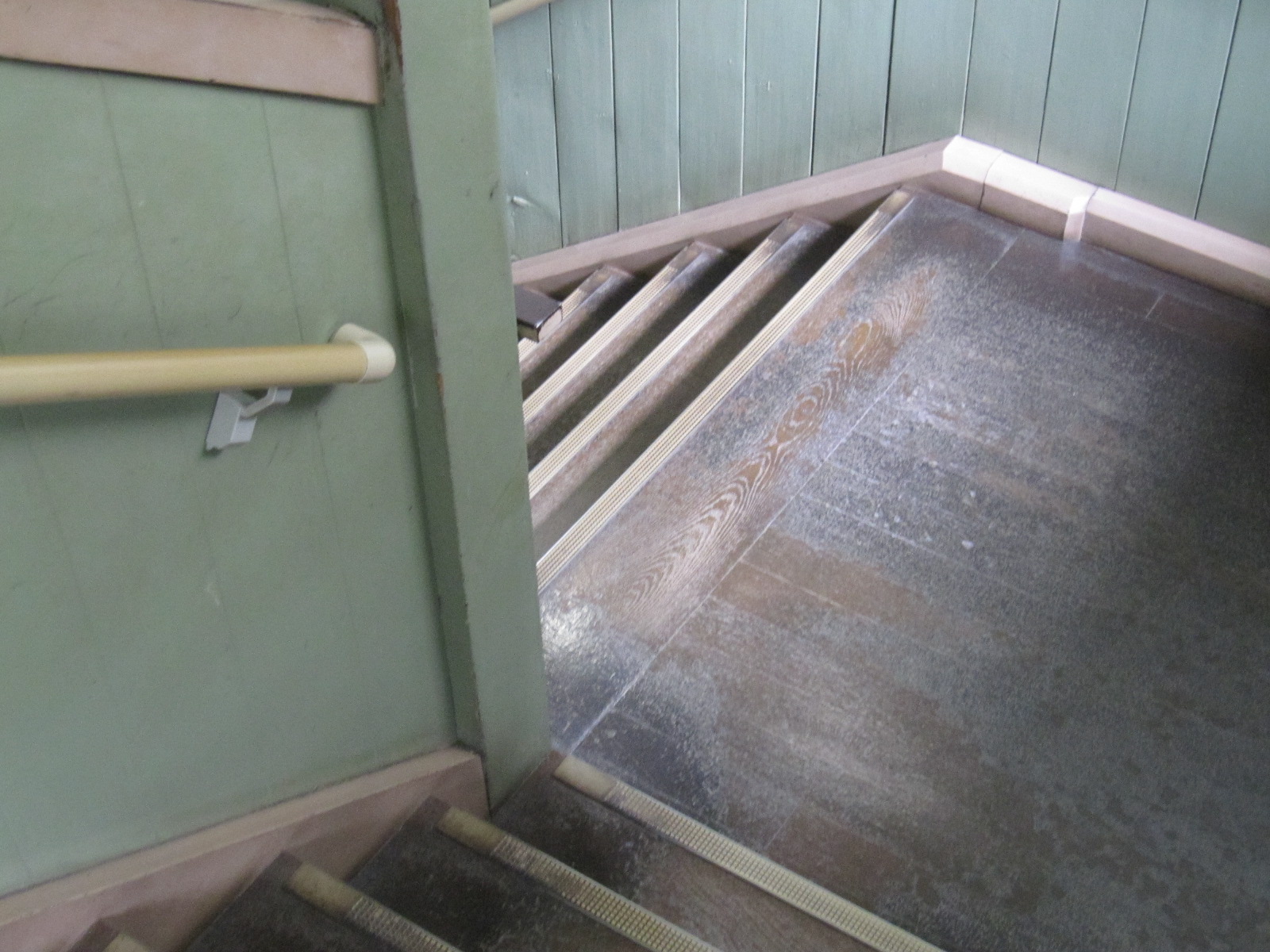 2階の広いホール(旧演武場)にある木製ベンチ。