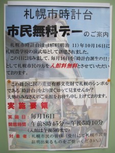 毎月16日は札幌市民無料デーとなっております。時計台をより深く知ってみませんか!